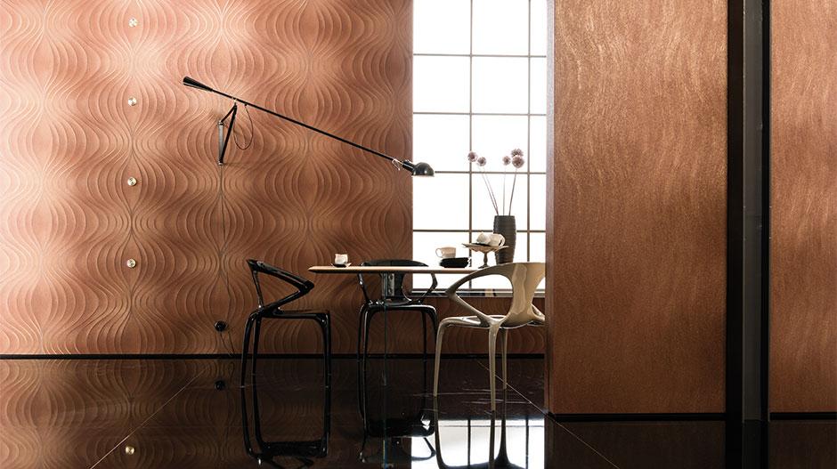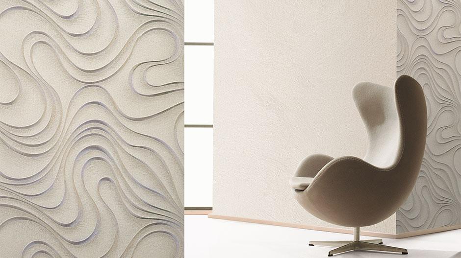 Как было сказано выше, Марбургская обойная фабрика тесно сотрудничает в своей деятельности с именитыми дизайнерами современности. Коллекция Colani Evolution создана при участии знаменитого немецкого дизайнера Луиджи Колани. Для того, чтобы оценить талант этого человека, достаточно посмотреть на его творения, а начать стоит, по моему мнению, с кузова автомобиля Porsche 959. Используя в своем творчестве уникальность изогнутых линий, Колани, удалось в полном объеме, создать на обойном полотне трехмерное пространство. Игра света и тени в его работах способствует созданию у постороженного наблюдателя эффекта обмана зрения. Соединяя в обойном рисунке металлические оттенки преимущественно с мягкими бежевым, серым и белым цветами, Колани играет с воображением, то собирая воедино все линии, то рассевая их по всему пространству обойного полотна.