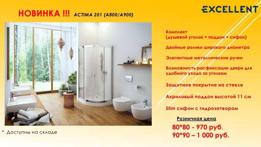 Рады сообщить о расширении линейки размеров ДУШЕВЫХ КОМПЛЕКТОВ (УГОЛОК+ПОДДОН+СИФОН) EXCELLENT ACTIMA 201