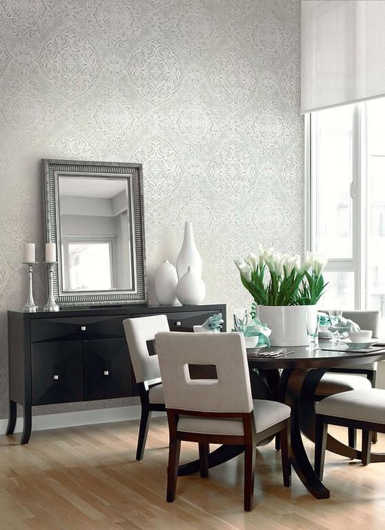 Благородство и изящество придадут интерьеру металлизированные обои – яркий и выразительный тренд этого сезона. Отражая свет, они приумножают его в несколько раз и наполняют им комнату.